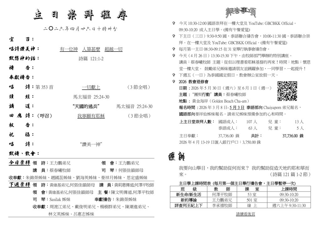 講 道:“天國的逃兵” 馬太福音 25:24-30